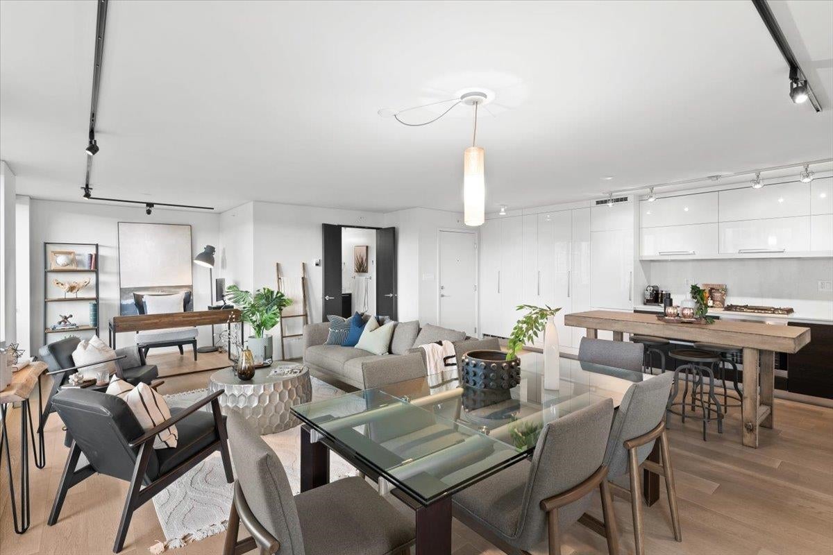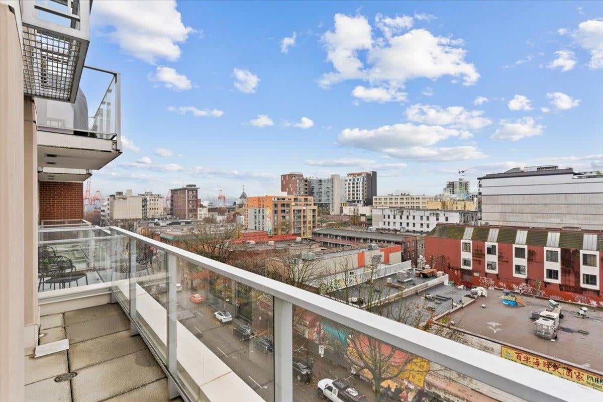 This modern 2 bed + flex SUB-PENTHOUSE at Keefer Block features 3 BALCONIES (322 sq.ft.) with city, mountain & peek-a-boo water views! European-inspired design with high-gloss cabinetry, wide-plank flooring & integrated appliances. Upgrades: BBQ gas hookup, added sound-proof wall insulation, lighting, & high-end doors. Flex room perfect for an office. Heating & gas included in strata fee. Amenities: rooftop with movie screen, BBQ, garden plots, dog wash, bike room & party room. Strong rental demand with proximity to SkyTrain, Downtown, the new St. Paul’s Hospital, and the city's best cafés & restaurants. Airbnb & short-term rentals allowed. Pets OK (3). 1 parking & 1 storage included (both oversized!). Turnkey opportunity in a high-growth neighbourhood! Book your private showing today!