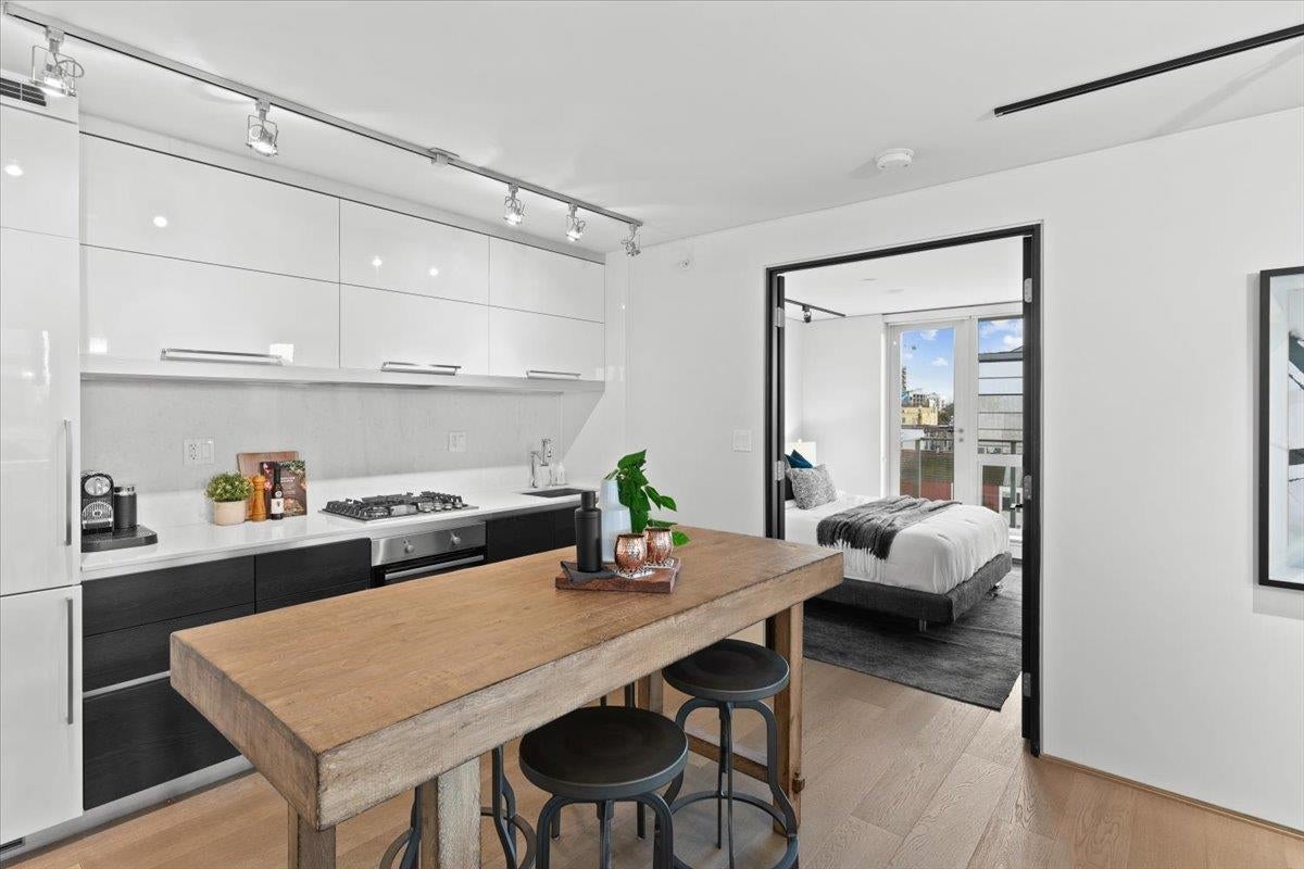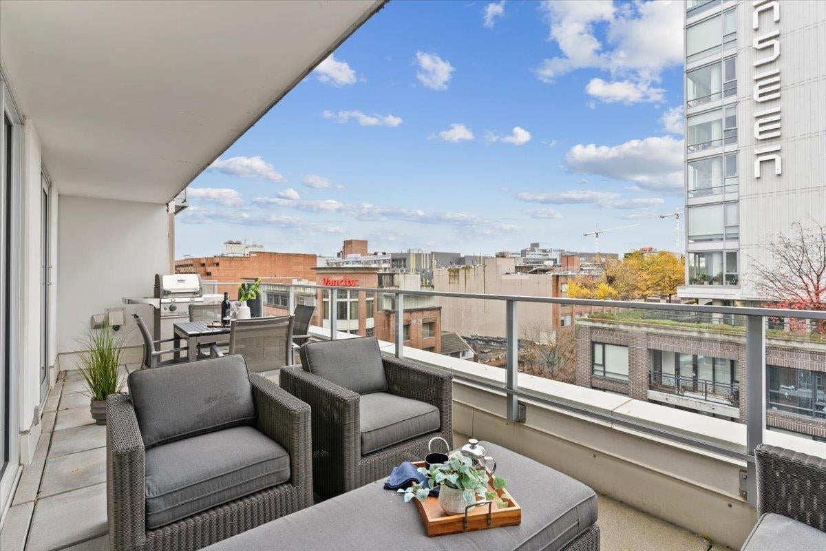This modern 2 bed + flex SUB-PENTHOUSE at Keefer Block features 3 BALCONIES (322 sq.ft.) with city, mountain & peek-a-boo water views! European-inspired design with high-gloss cabinetry, wide-plank flooring & integrated appliances. Upgrades: BBQ gas hookup, added sound-proof wall insulation, lighting, & high-end doors. Flex room perfect for an office. Heating & gas included in strata fee. Amenities: rooftop with movie screen, BBQ, garden plots, bike room & party room. Strong rental demand with proximity to SkyTrain, Downtown, the new St. Paul’s Hospital, and the city's best cafés & restaurants. Airbnb & short-term rentals allowed. Pets OK (3). 1 parking & 1 storage included (both oversized!). Turnkey opportunity in a high-growth neighbourhood! Book your private showing today!
